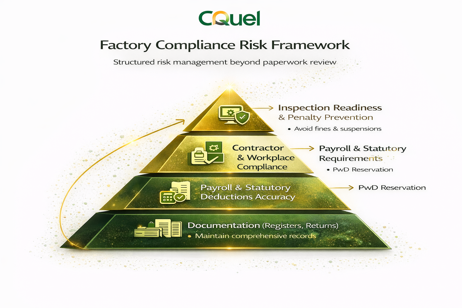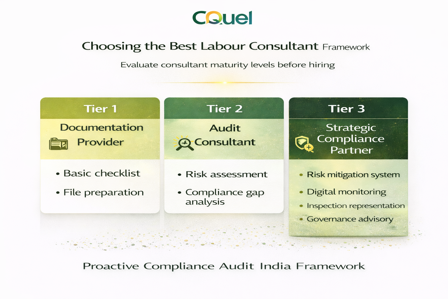 Unlike checklist-only consultants, Cquel builds preventive compliance systems, not temporary fixes.