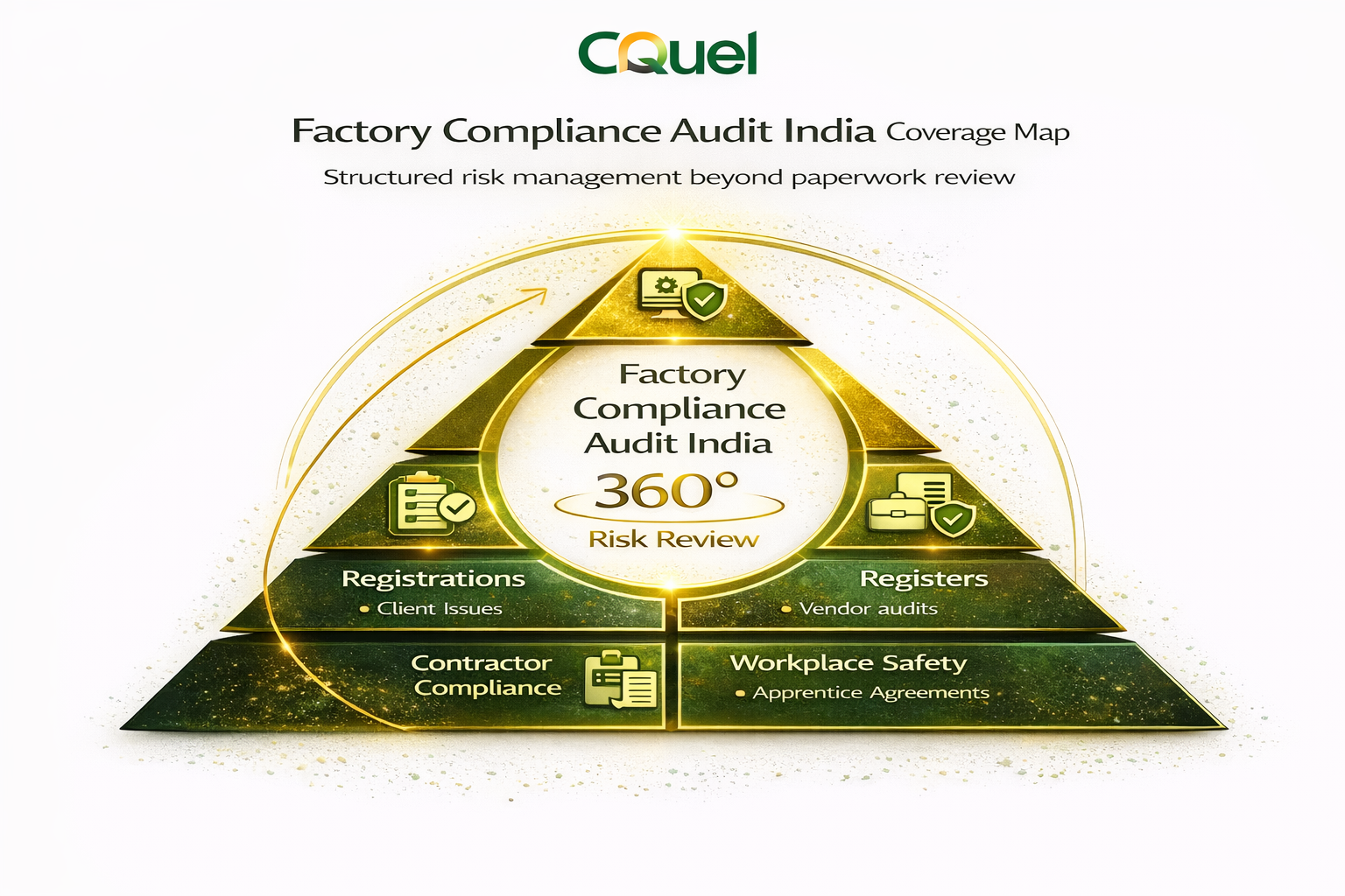 A factory compliance audit in India typically covers: