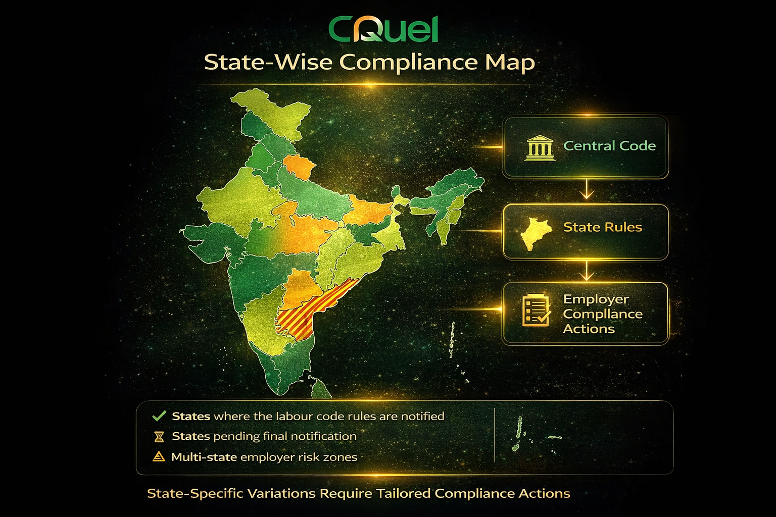 The four labour codes are Central laws. But the actual rules that affect your daily compliance inspections, forms, registers, health check-ups, and ESIC enforcement are notified state-wise.